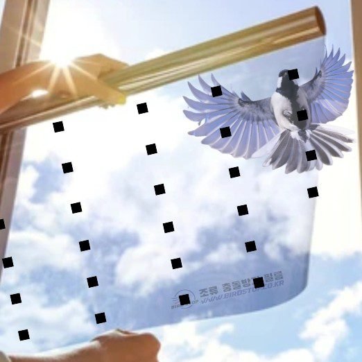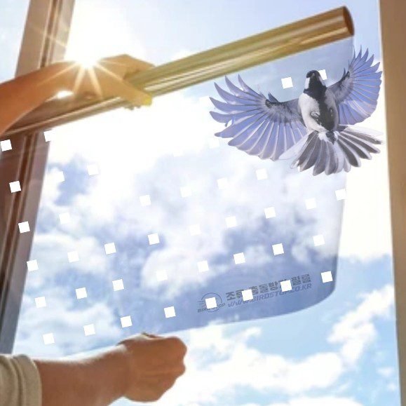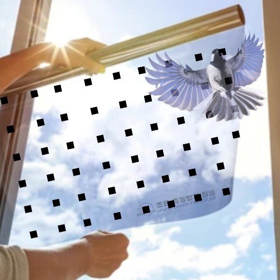 - 5x5cm 혹은 5x10cm의 간격을 가진 특수 문양으로 조류가 인지할 수 있는 특수코팅 된 제품임.
