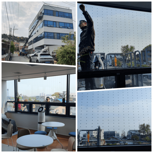 <개인 및 기업의 건물에 적용되는 투명 유리창 및 미러형 유리창의 경우 최근 많은 설치 의뢰가 접수되고 있음>