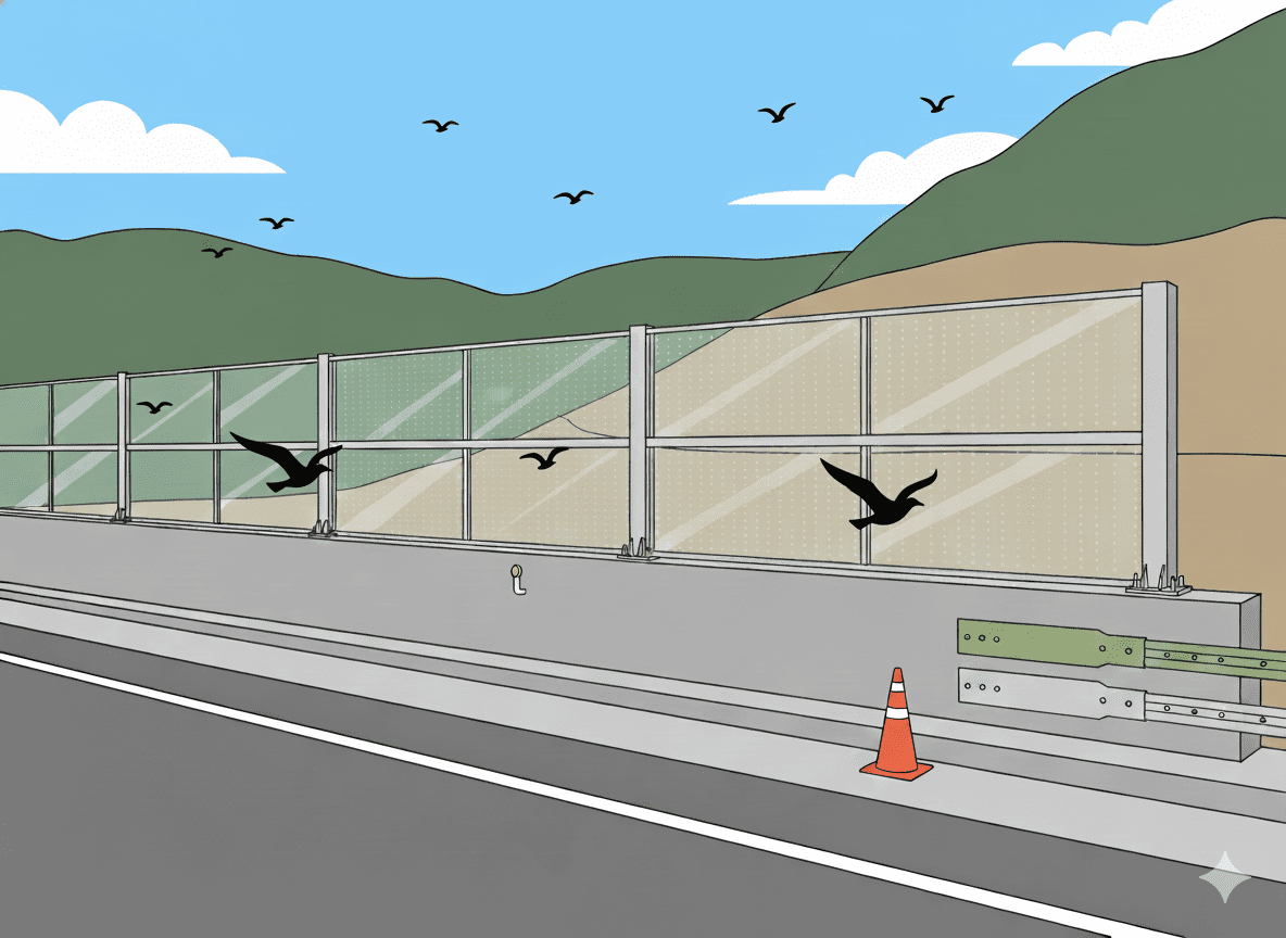 - 환경부 및 전국지자체 주도 도로 투명방음창 및 건물 투명 유리창 새충돌방지 필름 공급 및 시공.